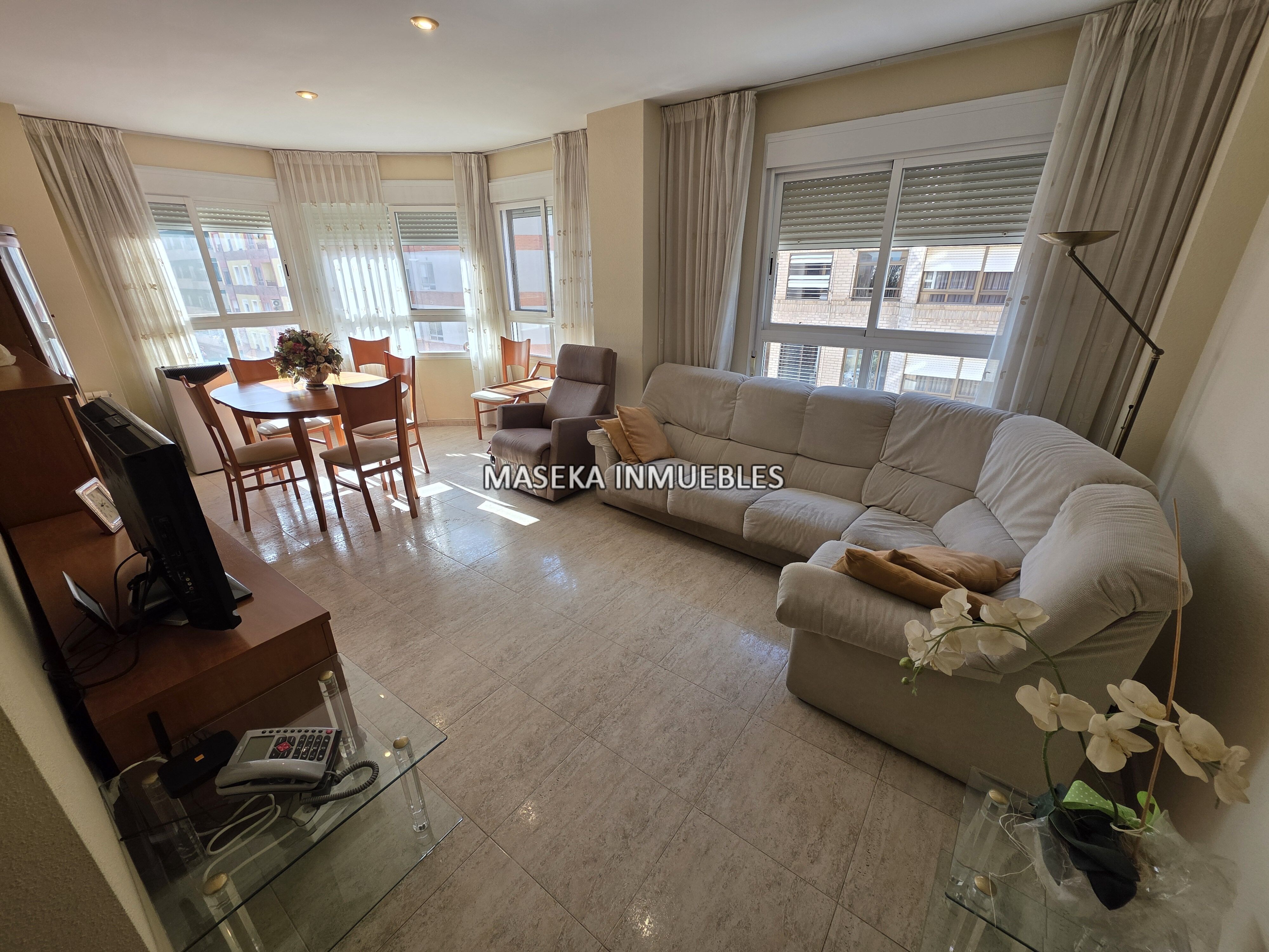 Descripción: Piso en venta en Castellón, zona Primer Molí-Rotonda de las Cañas. ¡3 orientaciones! Piso con 3 orientaciones (suroeste y norte), distribuido en 3 habitaciones dobles, 2 baños completos con ducha, cocina amplia con galería y amplio salón esquinero.