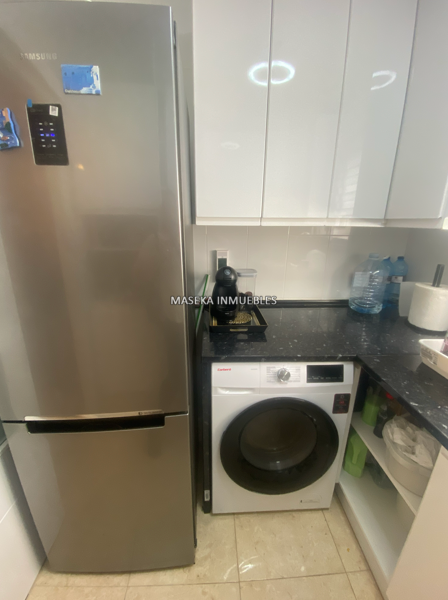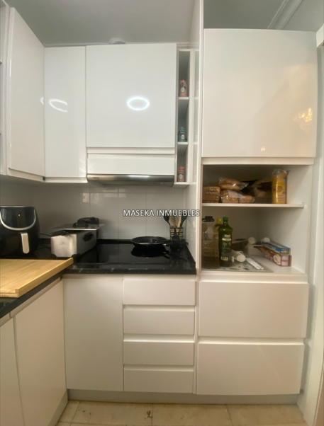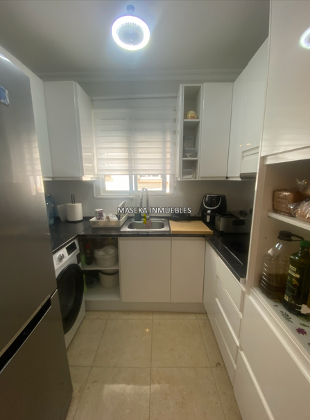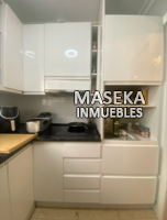 Cocina: De estilo moderno, totalmente equipada con muebles blancos brillantes, encimera oscura y electrodomésticos integrados . Tiene su propia ventana, algo clave para los humos.